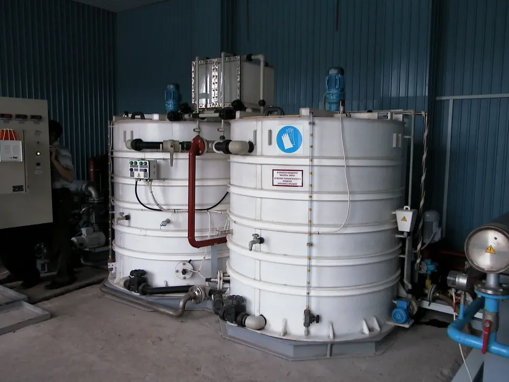- Полипропиленовые емкости для приготовления водного раствора изготовленные из чешского материала «Каплен», за двадцать лет эксплуатации в кислотных средах зарекомендовали только с положительной стороны, в отличие от металлических и полиэтиленовых емкостей различных производителей;
